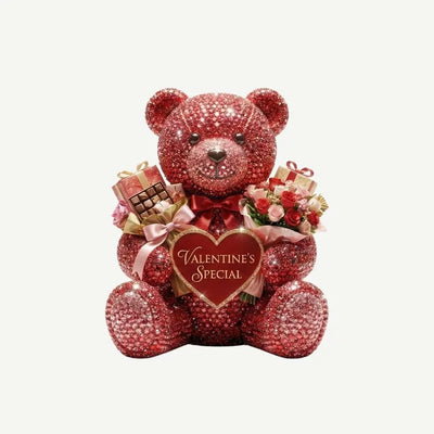 "The Celestial" Teddy & Bouquet Hamper (Crimson Red)